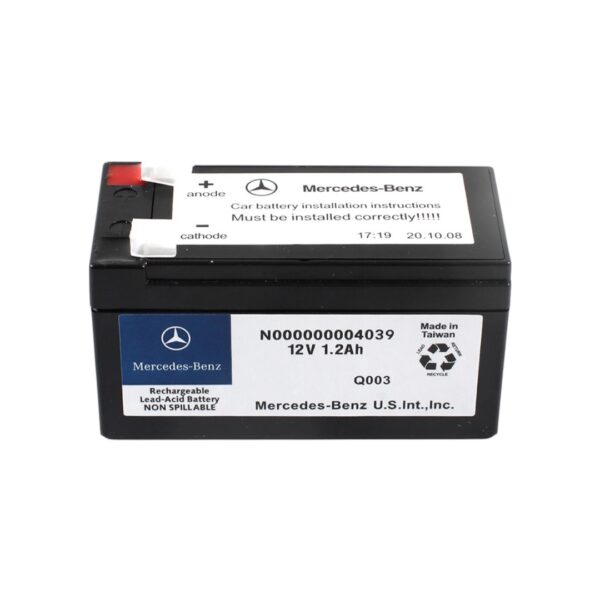 Batería Auxiliar de 12V / 1.2Ah para Mercedes-Benz – Ideal para mantener el sistema electrónico activo. Repuesto original, confiable y de fácil instalación.