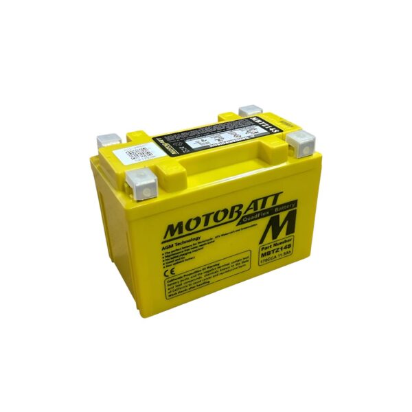 La batería Motobatt MBTZ14S 12 V 11.5 Ah 233 CCA es una batería de alto rendimiento especialmente diseñada para motos, scooters y vehículos livianos que exigen arranques potentes y fiables. Con tecnología AGM (Absorbed Glass Mat) sellada, ofrece una energía estable, libre de fugas y sin mantenimiento regular.