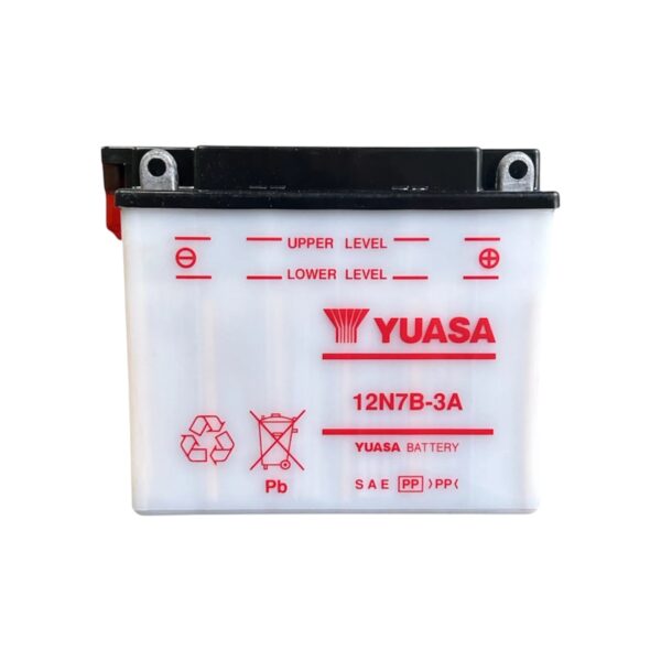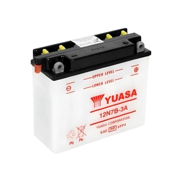 La Batería Yuasa 12N7B-3A 12V y 7Ah diseñada para motocicletas. Ofrece un arranque seguro y fiable en cualquier condición, incluso en frío o con el motor ahogado.