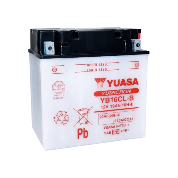 La Batería Yuasa YB16CL-B es una batería de 12V y 19Ah diseñada para motocicletas. Ofrece un arranque seguro y fiable en cualquier condición, incluso en frío o con el motor ahogado.