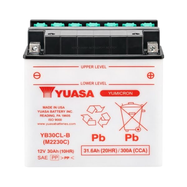 La Batería Yuasa YB30CL-B de 30 Ah y 300 CCA es perfecta para motos de agua y otros vehículos que requieren gran potencia de arranque.