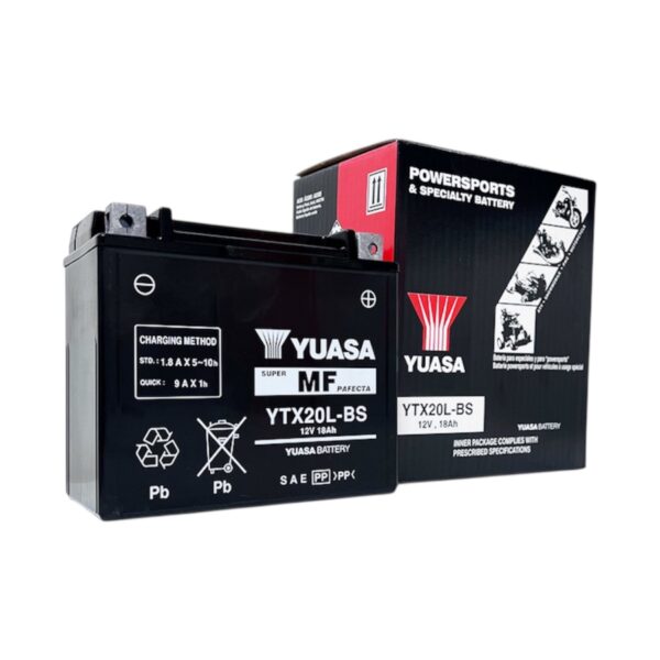 La Batería Yuasa YTX20L-BS de 18 Ah y 270 CCA ofrece un rendimiento superior y arranques confiables en motocicletas de alta demanda.