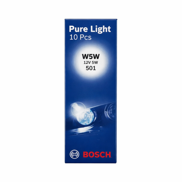 Ilumina con calidad y confianza con el kit de ampolleta Bosch Pure Light W5W T10 cola de pez, ideal para aplicaciones como luces de patente, posición, tablero e interiores. Estas ampolletas de 12V y 5W entregan un rendimiento constante, bajo consumo y una instalación sencilla para vehículos tanto livianos como motocicletas.