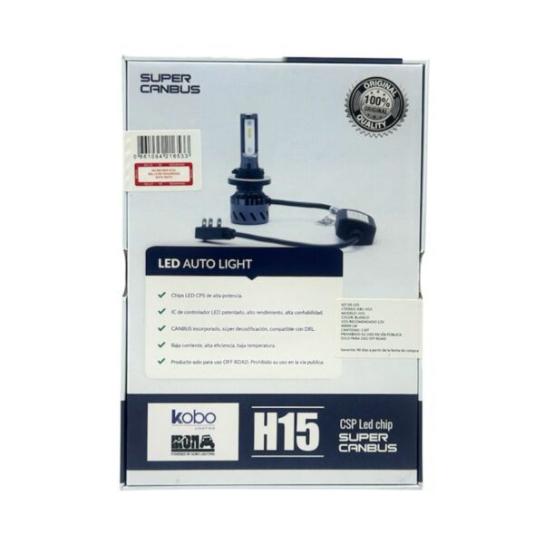 El Kit Ampolletas LED KOBO KB1-H15 está diseñado para brindar una mejora sustancial en el sistema de iluminación de vehículos que utilizan lámparas con conector H15. Gracias a su tecnología LED de alta potencia, temperatura de color blanco-fría y sistema canbus incorporado, ofrece una solución moderna, eficiente y de alto rendimiento.