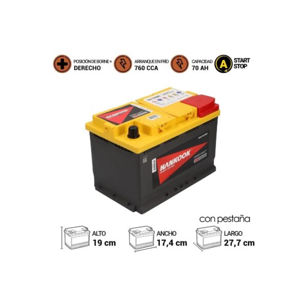 Batería Hankook AGM 70 Ah 760 CCA — potencia confiable, libre de mantenimiento y rendimiento superior para vehículos modernos con sistemas start-stop.