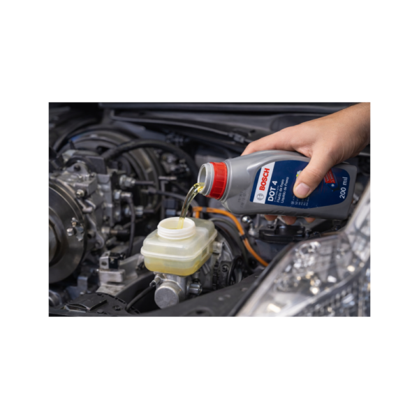 Líquido de Frenos Bosch DOT 4 200 ml diseñado para garantizar un funcionamiento seguro y eficiente del sistema de frenos. Su fórmula de alto rendimiento ofrece excelente resistencia a altas temperaturas, protección contra la corrosión y un desempeño confiable en sistemas de freno hidráulicos.