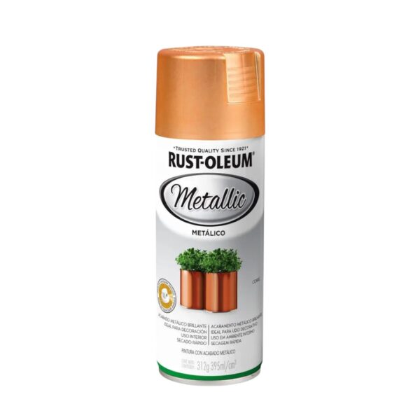 La Pintura Metallic Color Cobre Rust Oleum es ideal para dar a tus proyectos decorativos un acabado metalico color cobre. Perfecta para aplicar sobre madera, metal, cerámica no esmaltada, mampostería, yeso y más.