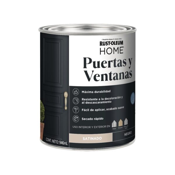 Pintura Home para Puertas y Ventanas Negro Satinado 946ml Rust-Oleum