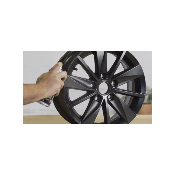 La pintura es adecuada para llantas de aluminio o acero, tanto de interior como de exterior. Se aplica fácilmente en formato en aerosol, incluso en superficies difíciles de alcanzar.