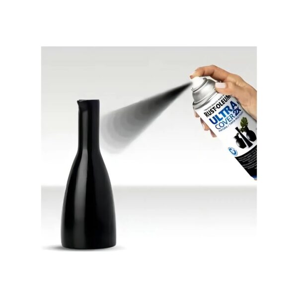 La Pintura Ultra Cover 2X Negro Brillante Rust-Oleum ofrece un color intenso y luminoso que transforma de inmediato cualquier proyecto decorativo.