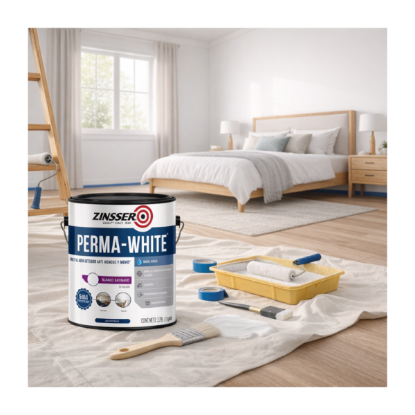 La Pintura Zinsser Perma White Blanco Satinado con su elegante acabado blanco Satinado , esta pintura ofrece un estilo moderno y suave que se adapta perfectamente a interiores exigentes.