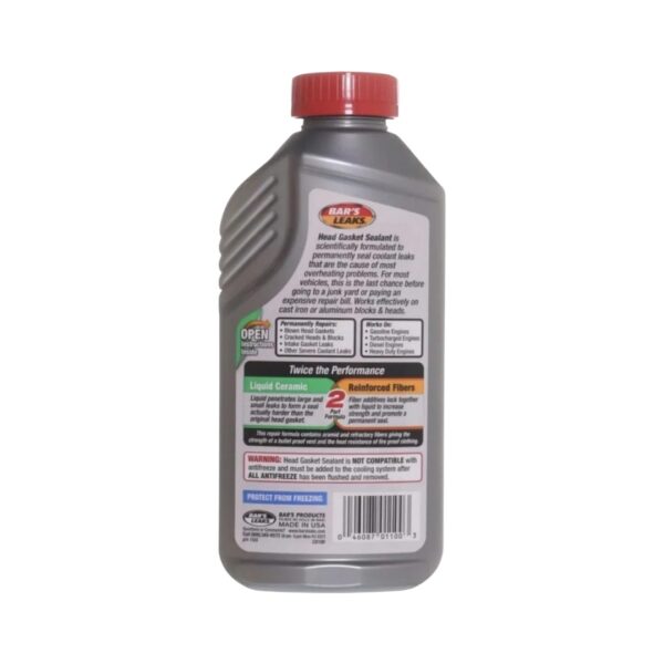 El Sellador de Empaquetadura de Culata Bar’s Leaks 567 ml es una solución profesional diseñada para reparar fugas internas del sistema de enfriamiento sin necesidad de desarmar el motor. Su fórmula avanzada actúa sellando pérdidas provocadas por fallas en la junta de culata, pequeñas grietas en el bloque, fisuras en cámaras de combustión o fugas internas que generan sobrecalentamiento y pérdida de presión.