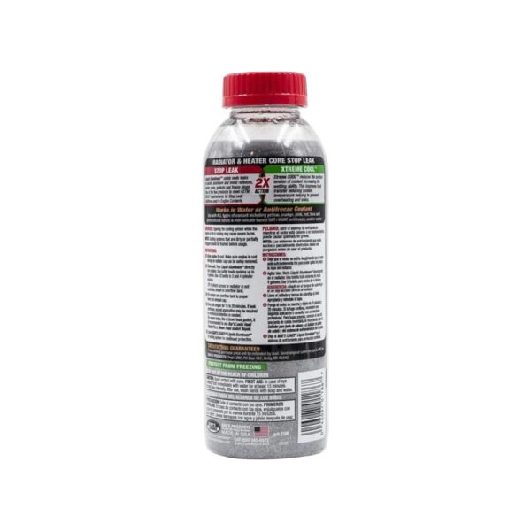 Este poderoso sellador fugas radiador aluminio ha sido formulado para actuar directamente en radiadores de plástico, aluminio, cobre o acero, así como en núcleos de calefactor, juntas y tapones de congelación. Contiene Xtreme Cool, un aditivo que no solo sella, sino que también ayuda a reducir la temperatura del motor y evita el sobrecalentamiento.
